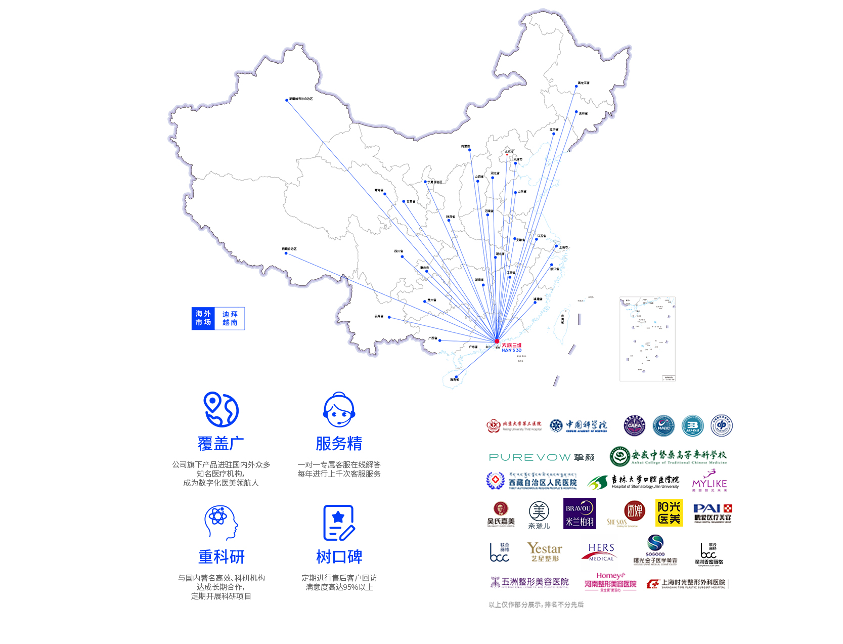 公司售後團隊由深耕于醫(yī)美(měi)行(xíng)業(yè)的(de)整形設計(jì)師(shī)構成,他(tā)們通(tōng)過醫(yī)美(měi)專業(yè)知(zhī)識、娴熟的(de)3D軟件(jiàn)操≠作(zuò)能(néng)力為(wèi)廣大(dà)客戶提供産品培訓和(hé)售後的(de)支持工(∞gōng)作(zuò),服務于上(shàng)百家(jiā)不(bù)同類型3D産品客戶。